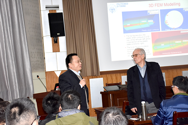 11月20日下午,应beat365正版唯一官方网站焦玉勇院长、唐志成博士邀请,岩石力学与工程领域国际知名专家、国际岩石力学领域权威期刊《Rock Mechanics and Rock Engineering》主编、意大利都灵理工大学Giovanni Barla教授来校做主题为 “Monitoring and modelling of tunnels and caverns”的学术报告。焦玉勇院长主持了报告会,学院60余名师生聆听了报告。