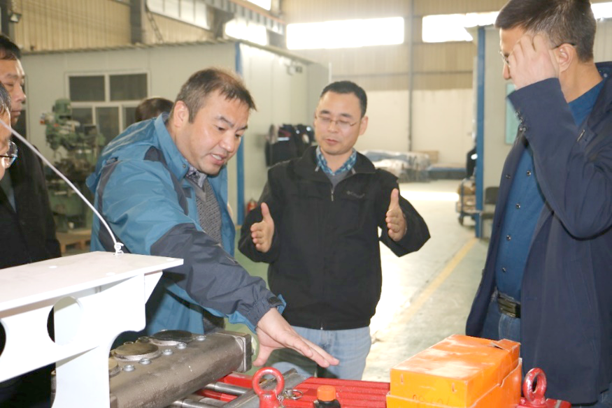 陕西省太合智能钻探有限公司董事长王义红对beat365正版唯一官方网站领导和专家的到来表示热烈欢迎。他首先详细介绍了企业的发展历程、科研成果以及发展愿景。他表示太合智能公司将不忘初心,砥砺前行。嗣后,专家们参观了目前国内扭矩最大的ZYL-17000D型矿用履带式全液压定向钻机、YSX15矿用有线随钻测量装置、YSX16矿用无线随钻测量系统、随钻测量钻具以及金刚石复合片钻头等系列高新产品,还就细节技术问题驻足讨论。