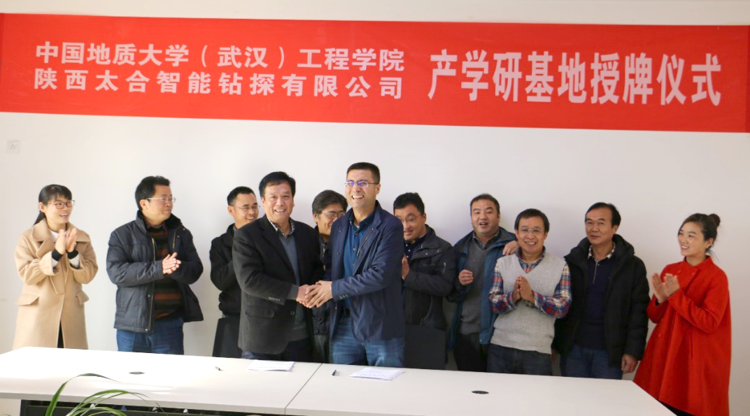 (通讯员:胡郁乐)2017年12月6日上午,陕西太合智能钻探有限公司与beat365正版唯一官方网站(武汉)beat365正版唯一官方网站在陕西西安签署了产学研实践基地合作协议。陕西太合智能成立于2013年,立足于煤矿安全生产,是一家集装备研发设计、生产加工与技术服务为一体的高新技术企业。公司主要从事矿用钻探设备及配套钻具、仪器仪表、金属与非金属材料的研发、生产及销售。公司一直致力于产品的创新开发。大扭矩定向钻机,高品质异形截面钻杆、智能钻具以及无线MWD、泥浆MWD等产品在行业中竞争优势明显,为矿山开采提供高标准钻探技术与专业化服务。