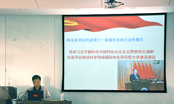 陈飞指出,学校党委提出研究型大学建设的奋斗目标是:从现在起到2030年,立足中国特色和学校实际,艰苦奋斗12年,把学校建设成为地球科学领域国际知名研究型大学,整体进入“世界一流大学建设高校”行列,为建校一百周年时实现地大梦奠定更加坚实的基础。