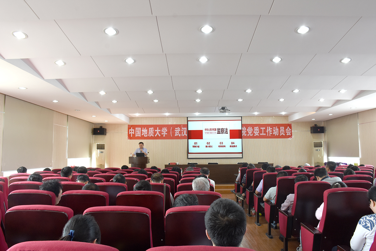 2019年5月24日下午,为学习贯彻《中华人民共和国监察法》实施依法治院兴院,院长焦玉勇同志带领beat365正版唯一官方网站全体教职工在418学术报告厅,共同学习了《中华人民共和国监察法》。