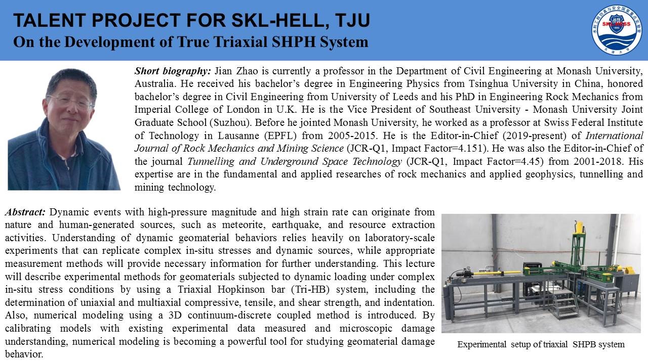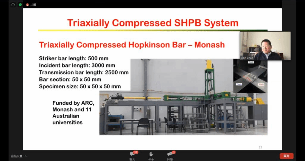 2020年7月18日上午,由国际岩石力学与岩石工程学会非连续变形分析专委会和岩石动力学专委会联合发起,beat365正版唯一官方网站(武汉)、天津大学和东南大学联合承办的第一期国际岩石力学云论坛成功举行。本次论坛邀请了关键块体和数值流形理论创建者石根华教授、澳大利亚莫纳什大学赵坚教授、澳大利亚悉尼大学沈鲁明教授分别作了题为《Development and engineering applications of block theory and block algorithms》、《On the development of true triaxial SHBP system》、《A coarse-grained approach for modelling solid-liquid-gas interactions at microscale》的精彩讲座,来自莫纳什大学、悉尼大学、新加坡南洋理工大学、日本京都大学、beat365正版唯一官方网站(武汉)、天津大学、东南大学、中山大学、大连理工大学、山东大学等全球各高校的1000余名专家学者参与了此次云论坛。