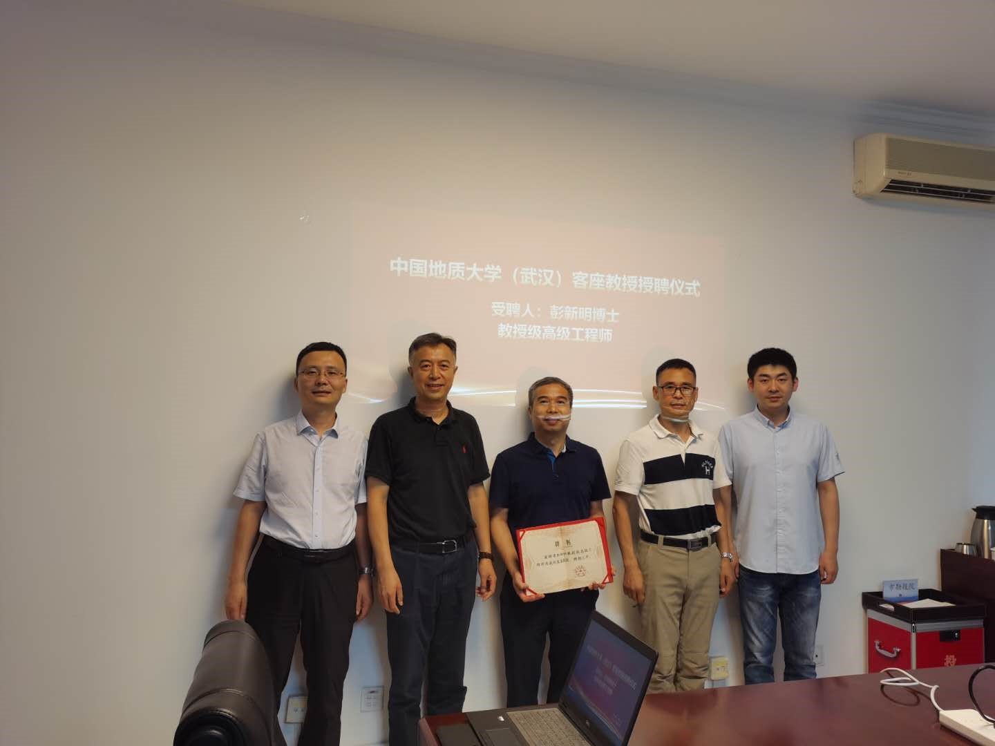 8月12日下午,beat365正版唯一官方网站(武汉)聘请彭新明博士为客座教授的仪式在北京市地质勘察技术院217会议室举行。北京市地质勘察技术院行政负责人王立发、院副总工程师兼资源勘查中心主任彭新明及相关人员出席仪式。仪式由beat365正版唯一官方网站副院长窦斌教授主持。