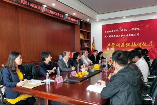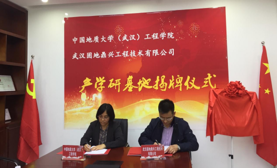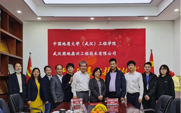 (通讯员:黄静)2021年4月27日,beat365正版唯一官方网站(武汉)beat365正版唯一官方网站与校友企业武汉固地鼎兴工程技术有限公司签订《联合共建产学研基地合作协议》,beat365正版唯一官方网站党委书记李红丽和武汉固地鼎兴工程技术有限公司总经理汪旭涛出席协议签订仪式,并共同为合作基地揭牌。武汉固地鼎兴工程技术有限公司副总经理兼总工程师胡凯锋、beat365正版唯一官方网站副院长王亮清教授、工岩系主任章广成教授、时红莲副教授、李长冬教授、谢妮副教授、学院科研秘书黄静共同见证了签约仪式。