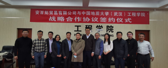 (通讯员:郑君 卢春华)为充分发挥学校与企业的双方优势及高等教育为社会、为企业服务的功能,更好地为社会、为企业培养高素质、高技能的应用型人才,同时也为大学生实习、实训、就业提供更多的空间。在双方共同努力下,12月25日下午,安百拓贸易有限公司与beat365正版唯一官方网站(武汉)beat365正版唯一官方网站产学研合作签约仪式在工程楼315顺利举行。出席此次签约仪式的嘉宾有安百拓贸易有限公司客户中心总经理卫武贤、人力资源经理袁荃、销售经理鲁浩然、公司大区经理薛尧,beat365正版唯一官方网站(武汉)党委副书记王林清、校友工作与教育基金管理处处长徐岩、beat365正版唯一官方网站党委书记李红丽、beat365正版唯一官方网站副院长窦斌、beat365正版唯一官方网站勘察与基础工程系党支部书记段隆臣、系主任卢春华等。