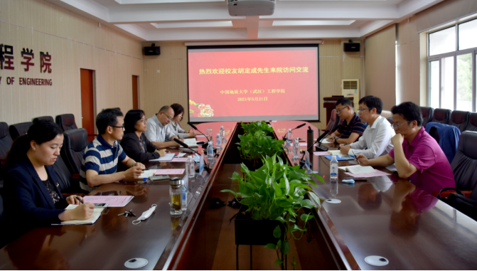 (通讯员:黄静 孙武成 摄影:王灿 孙武成)2021年5月21日下午,我校校友、AECOM资深董事胡定成先生受聘beat365正版唯一官方网站(武汉)客座教授仪式在工程楼315会议室举行。beat365正版唯一官方网站党委书记李红丽、党委副书记江广长、副院长窦斌、勘基系党支部书记段隆臣、勘基系主任卢春华、学院人事秘书杨冠青、科研秘书黄静出席受聘仪式。江广长副书记主持受聘仪式。