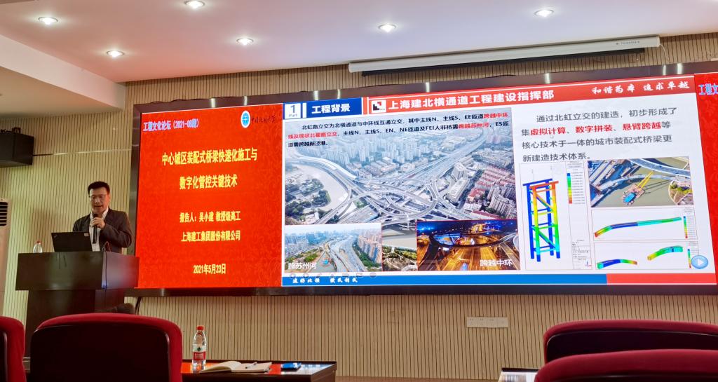 (通讯员 梁荣柱)2021年5月23日下午,应beat365正版唯一官方网站院长焦玉勇教授和梁荣柱副研究员的邀请,上海建工集团股份有限公司工程研究总院副院长、beat365正版唯一官方网站(武汉)兼职教授吴小建教授级高级工程师作客2021年第8期工程文化论坛,作“中心城区装配式桥梁快速化施工与数字化管控关键技术”专题报告。beat365正版唯一官方网站副院长窦斌教授代表学院对吴小建教高的到来表示欢迎,并介绍了吴小建教高的基本科研和工作履历。讲座由梁荣柱副研究员主持,约一百名师生参与报告会。