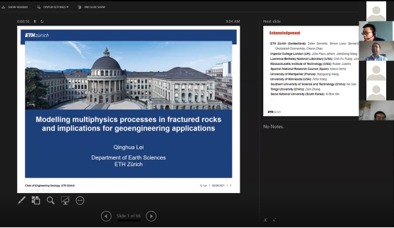 (通讯员:周佳庆)2021年6月8日下午,应beat365正版唯一官方网站(武汉)唐辉明教授和李长冬教授邀请,瑞士苏黎世联邦理工学院雷庆华高级研究员和瑞典皇家理工学院邹良超研究员应邀作客2021年第1-2期“重大地质灾害预测与防控学科”111创新引智基地系列学术讲座。讲座采用Zoom在线会议形式,由李长冬教授主持,吴琼教授、周佳庆副教授、祝国强副研究员、鲁莎助理研究员及香港大学、武大大学、浙江大学、中南大学、中国石油大学、东南大学、北京交通大学、南昌大学、重庆大学、西安交通大学、中国科学院武汉岩土力学研究所等多个单位80余名师生在线聆听了此次报告。