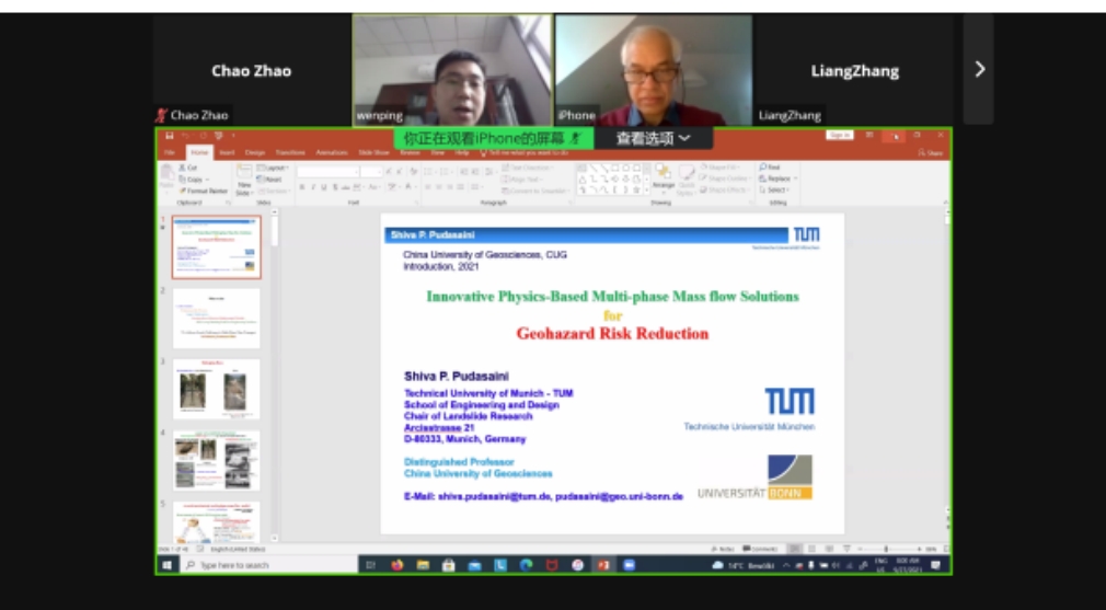 (通讯员:邢磊 赵超)2021年9月27日下午,应“重大地质灾害预测与预防学科”111创新引智基地唐辉明教授和龚文平教授邀请,德国慕尼黑工业大学Shiva P. Pudasaini教授通过Zoom meeting平台为我校师生作线上学术报告。beat365正版唯一官方网站龚文平教授主持报告会,40余名师生在线聆听了此次报告。