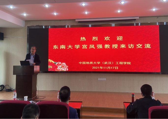(通讯员:邹俊鹏 张全)11月17日下午,应beat365正版唯一官方网站院长焦玉勇教授和邹俊鹏特任教授的邀请,东南大学宫凤强教授作客工程文化论坛,在工程楼418报告厅为beat365官网师生作学术报告。报告会由beat365正版唯一官方网站副院长王亮清教授主持,张浠教授、罗学东教授、张奇华教授、谭飞特任教授、唐志成特任教授、郑飞特任教授、程毅副教授及百余名师生聆听了此次报告。