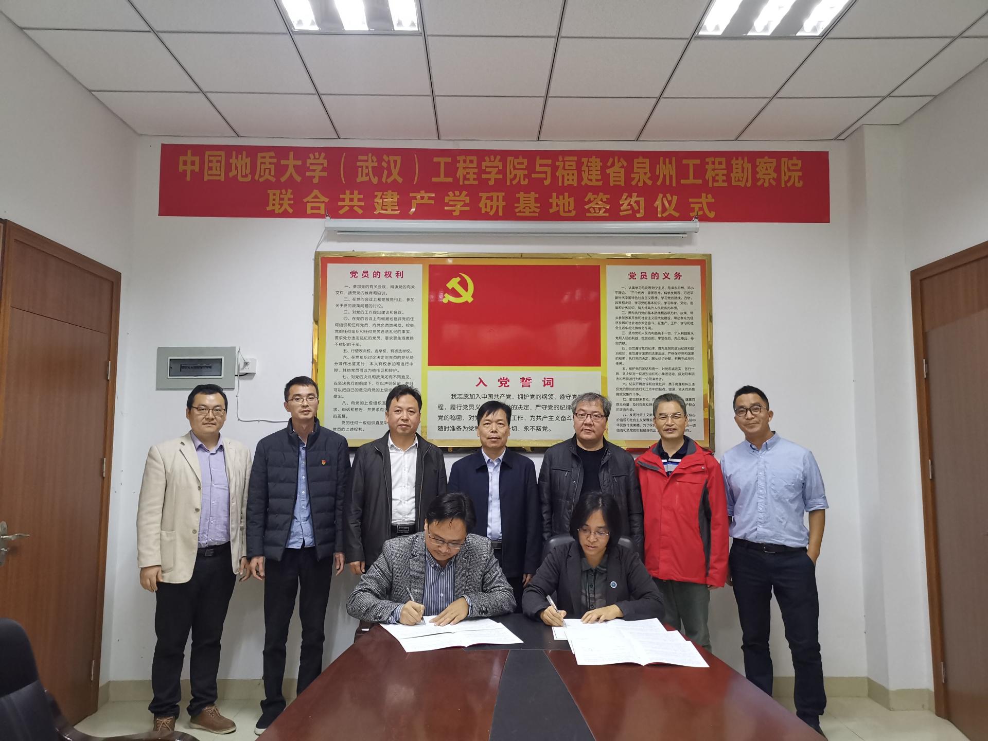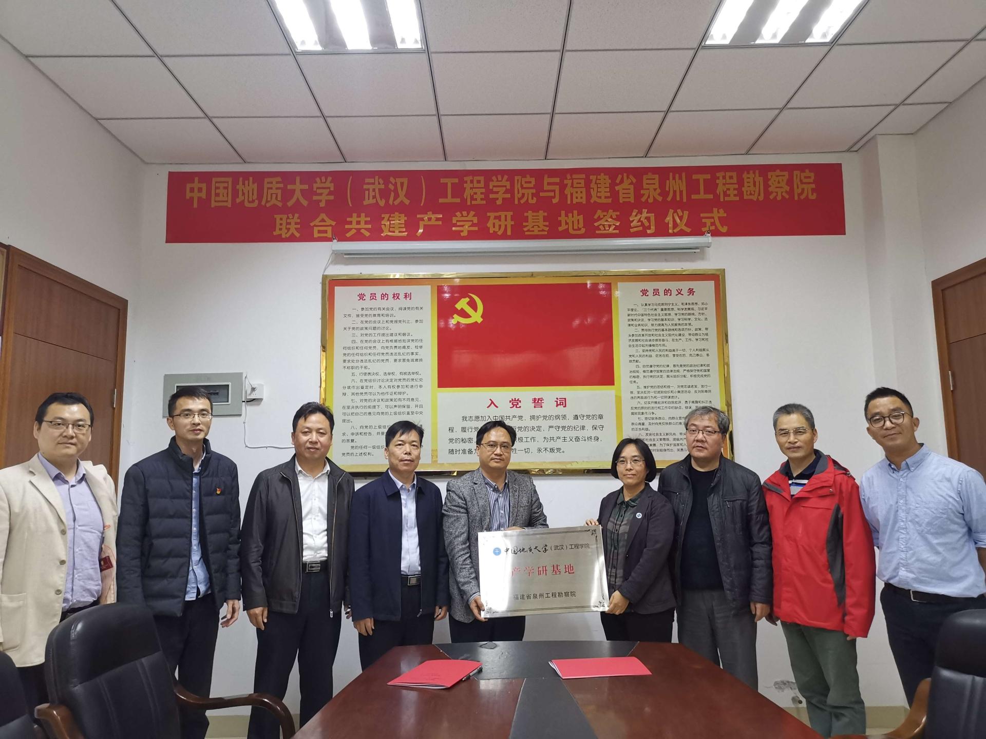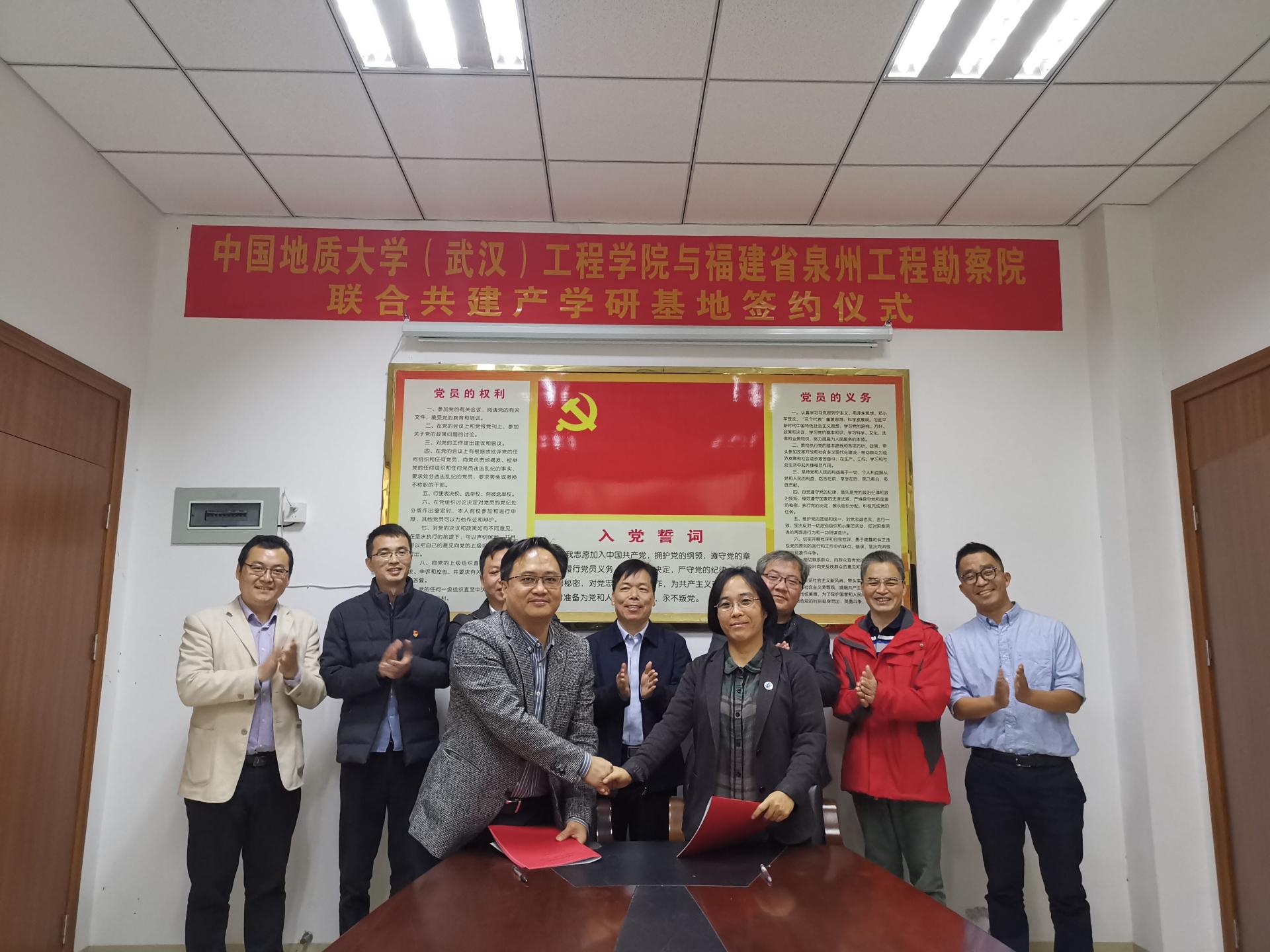 (通讯员:任兴伟)为进一步提升院科研创新实力,培养储备高素质专业化技术人才,经过前期接洽,12月17日,beat365正版唯一官方网站(武汉)beat365正版唯一官方网站与福建省泉州工程勘察院产学研合作签约仪式在泉州举行。beat365正版唯一官方网站(武汉)beat365正版唯一官方网站党委书记李红丽、副院长王亮清、工程地质与岩土工程系副主任简文星,福建省闽东南地质大队队长林建开、副队长陈守伟、泉州工程勘察院院长曾文杰、副院长蔡伟等领导出席签约仪式。
