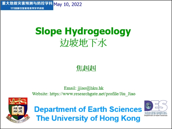 焦赳赳教授讲座题目为“边坡地下水”,讲座首先从边坡区域地下水分布规律角度,阐述了边坡稳定性分析中,不能局限于边坡体本身,而应该考虑更大区域的水文地质边界;随后,焦教授通过简述地下水潜水与承压水的基础概念和理论,引出了承压水在边坡稳定性分析中的重要性,并证实了承压水在香港地区的普遍性;结合香港Pak Kong滑坡案例,指出了高密度城市群建设改变区域地下水排泄路径,是导致边坡失稳破坏的重要原因之一;最后,焦教授综合分析了香港Siu Sai Wan滑坡、Ching Cheung Road滑坡、Tin Wan Road滑坡、Lai Ping Road滑坡等数个滑坡案例,提出了香港地区典型的椅状滑坡模式,并分析了其失稳破坏机制。