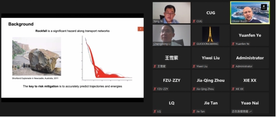 (通讯员:叶阳)2022年6月29日上午,应beat365正版唯一官方网站(武汉)唐辉明教授和叶阳特任教授邀请,澳大利亚纽卡斯尔大学Olivier Buzzi教授应邀作客2022年第6期“重大地质灾害预测与防控学科”111创新引智基地系列学术讲座。讲座采用Zoom在线会议形式,由叶阳特任教授主持,李长冬教授、张奇华教授、周佳庆特任教授、祝国强副研究员以及武汉大学、重庆大学、成都理工大学、西南交通大学、长安大学、中国地质调查局成都工艺所、昆明理工大学、三峡大学等多个单位50余名师生在线聆听了此次报告。