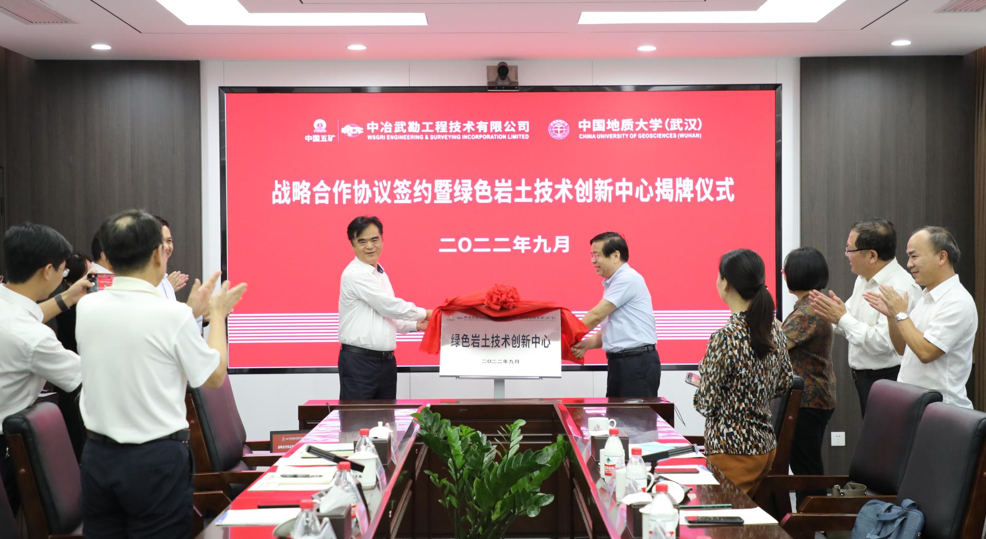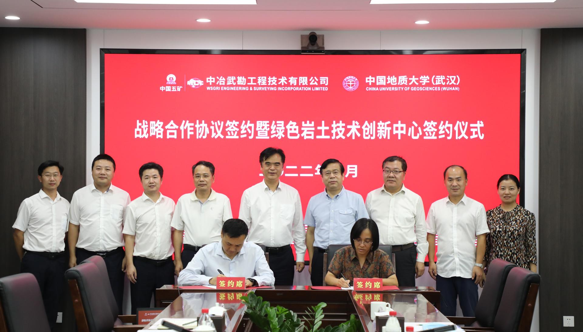 9月29日,beat365正版唯一官方网站与中冶武勘工程技术有限公司签署战略合作框架协议,并联合成立“绿色岩土技术创新中心”,深入推进产学研发展。beat365正版唯一官方网站党委书记李红丽和中冶武勘副总经理、总工程师江永建代表双方签署战略合作协议。beat365正版唯一官方网站(武汉)党委副书记唐辉明,中冶武勘党委书记、董事长臧中海见证签约并共同为“绿色岩土技术创新中心”揭牌。双方将把科教资源优势和工程技术成果转化优势紧密结合,在产学研用协同创新、人才培养等方面进行全方位的合作。