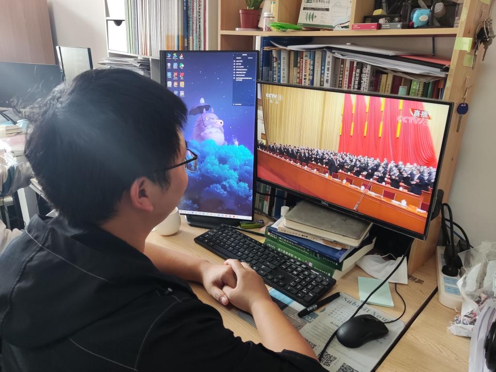 beat365正版唯一官方网站党委书记李红丽,院长焦玉勇,副院长王亮清、倪晓阳、章广成,院党委副书记高晓东,各教工党支部书记、主任,院直机关全体工作人员及辅导员在工程楼315集中收看,各系(中心)教工党支部在各系会议室集中收看,学生党支部、团支部代表在工程楼418报告厅集中收看,窦斌副院长及学院代表等在东区教学综合楼A0113集中收看,其他师生在各自宿舍、工作室、会议室等通过电脑、手机收听收看。