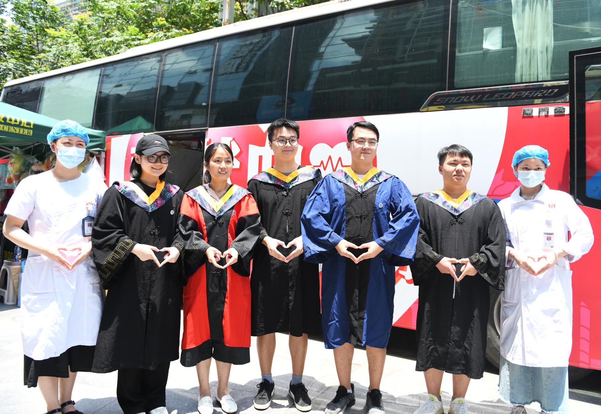 2022年6月14日,beat365正版唯一官方网站6名毕业生不约而同来到学校附近的光谷献血点,参加无偿献血。张玉贤 摄