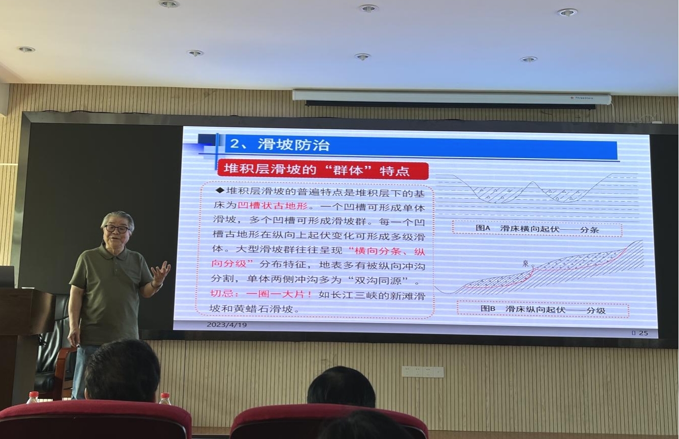 活动还邀请了中冶武勘工程技术有限公司副总经理占仲国教授级高级工程师、武汉市勘察设计有限公司副总经理、总工程师官善友教授级高级工程师、中国一冶集团有限公司副总工程师王平教授级高级工程师、湖北建鄂勘察设计审查咨询有限公司向艳正高职高级工程师、中南勘察设计院集团有限公司副总工程师马郧正高职高级工程师、长江勘测规划设计研究有限责任公司所长助理徐复兴正高职高级工程师、中国科学院武汉岩土力学研究所江权研究员、武汉理工大学芮瑞教授、武汉华太岩土工程有限公司吴西臣正高职高级工程师等莅临现场。beat365正版唯一官方网站唐辉明教授、李红丽书记、章广成教授、徐光黎教授、贾洪彪教授、葛云峰副教授、周佳庆特任教授等150多名师生在现场聆听了报告。