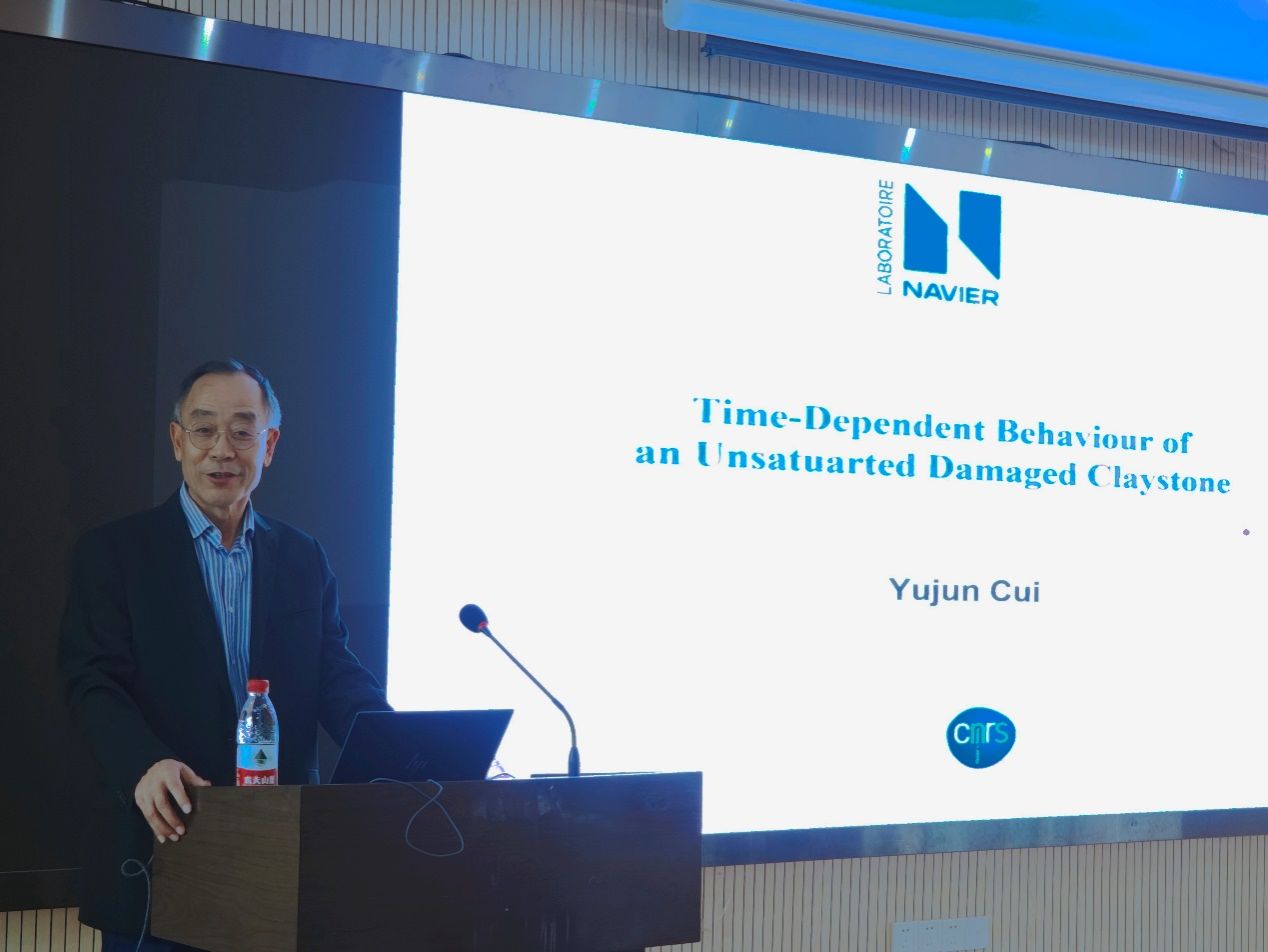 (通讯员 张峰 黄静)2023年10月31日上午,应beat365正版唯一官方网站唐辉明教授和张峰特任教授的邀请,法国国立路桥大学Navier实验室岩土中心(CERMES)主任崔玉军教授来校访问,并作了题为“Time-dependent behaviour of unsaturated damaged claystone”的学术报告。唐辉明教授主持了报告会,李长冬教授、周佳庆特任教授、张峰特任教授、崔德山副教授、任兴伟副教授等100余名师生在现场参加了此次报告会。