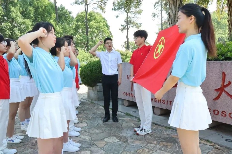 随后文新带领全体团员重温入团誓词。“我志愿加入中国共产主义青年团”“为共产主义事业而努力奋斗”......一句句庄重的誓词彰显着工程青年的初心,郑重的宣誓激励着他们不忘初心、继续前进,大家高声喊出宣誓人,宣誓声在青春节日的校园里催人奋进。