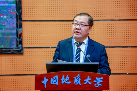 中国工程院院士、宁波大学杜时贵教授致辞。他深情追忆了自己在地大求学、工作期间与晏同珍先生接触所感受到的大师风范,表达了对先生的深切缅怀与崇高敬意。他号召与会学者以晏同珍先生为榜样,以纯粹的热爱与刻苦钻研在科学研究的道路上锐意进取,勇攀科学高峰,推动工程地质学科理论与实践取得新突破。