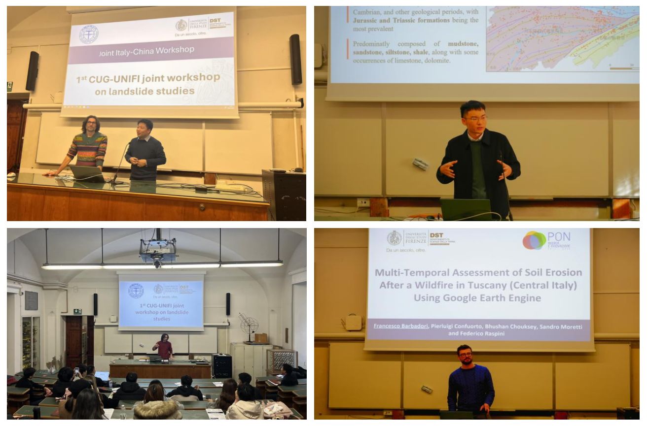 1月8日至9日,beat365正版唯一官方网站师生和佛罗伦萨大学师生开展了为期2天的中意滑坡研究联合研讨会。beat365正版唯一官方网站李德营教授、刘书豪老师与朱仕林、佘祥杰、王凯等博士生和佛罗伦萨大学Samuele Segoni教授、 Nicola Nocentini、 Francesco Barbadori、Istan Szakolczai等博士连续开展了十余场专题讲座,内容涵盖“高度植被覆盖地区潜在滑坡的识别”“基于机器学习方法的滑坡时空预测”“考虑地质环境空间差异性的区域滑坡降雨阈值研究”“使用谷歌地球引擎对托斯卡纳山火后的水土流失进行多时间尺度评估”等主题,两校师生就上述主题进行了广泛深入的研讨交流。