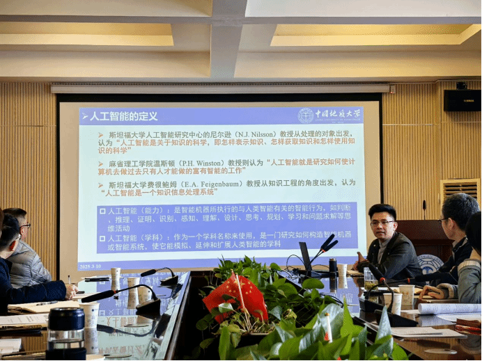 陈教授在报告中详细阐述了人工智能的基本概念、发展历程以及国内高校人工智能课程的开设现状。他结合地大实际情况,介绍了我校开设人工智能课程的教学目标与课程内容设计,以及实验平台开发等方面内容,致力于帮助学生掌握人工智能前沿技术的基本思想与应用思路,拓宽学术视野,提升各专业学生的科学素养,优化其知识结构。