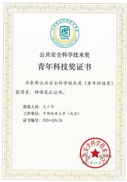 开幕式上,举行了公共安全科学技术奖颁奖仪式,beat365官网安全工程系周克清特任教授和beat365官网研究生导师毛少华研究员获公共安全科学技术奖青年科技奖。2024年度公共安全科学技术奖青年科技奖共授予高校组19人和科研/企业组1人,旨在表彰在自然科学研究、工程技术、科技成果推广转化及科技管理工作中做出突出贡献的青年学者。