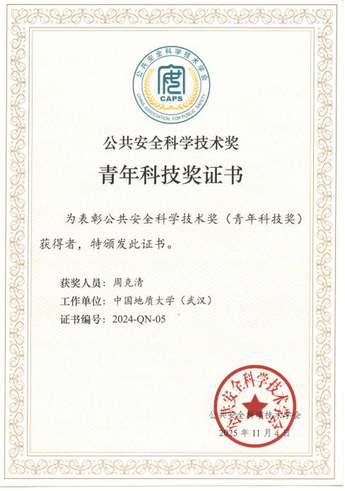 周克清,特任教授,博士生导师,湖北省高层次青年人才,全球前2%顶尖科学家,国际先进材料学会青年会士,国家一流本科课程负责人,全国高校“双带头人”教师党支部书记“强国行”专项行动团队负责人,“挑战杯”全国优秀工作者、学科评估通讯评审专家。以第一/通讯作者发表SCI论文100篇,8篇入选ESI高被引/热点论文,Web of Science单篇引用超100次论文22篇;主持国家自然科学基金面上/青年项目、GF科研项目、国家重点研发计划专题、湖北省自然科学基金等课题;获国际/国家授权发明专利11项,其中2项成功转化;获湖北省科学技术进步三等奖1项(R1)、中国安全生产协会安全科技进步奖一等奖2项(R2和R7)、中国职业安全健康协会青年科技奖、公共安全科学技术奖青年科技奖;担任SCI期刊Polymers、EI期刊《中国安全科学学报》、中文核心期刊《安全与环境工程》《安全与环境学报》《中国安全生产科学技术》等期刊编委/青年编委;指导学生获“挑战杯”全国二等奖、“互联网+”全国铜奖等创新创业竞赛奖励30余项。
