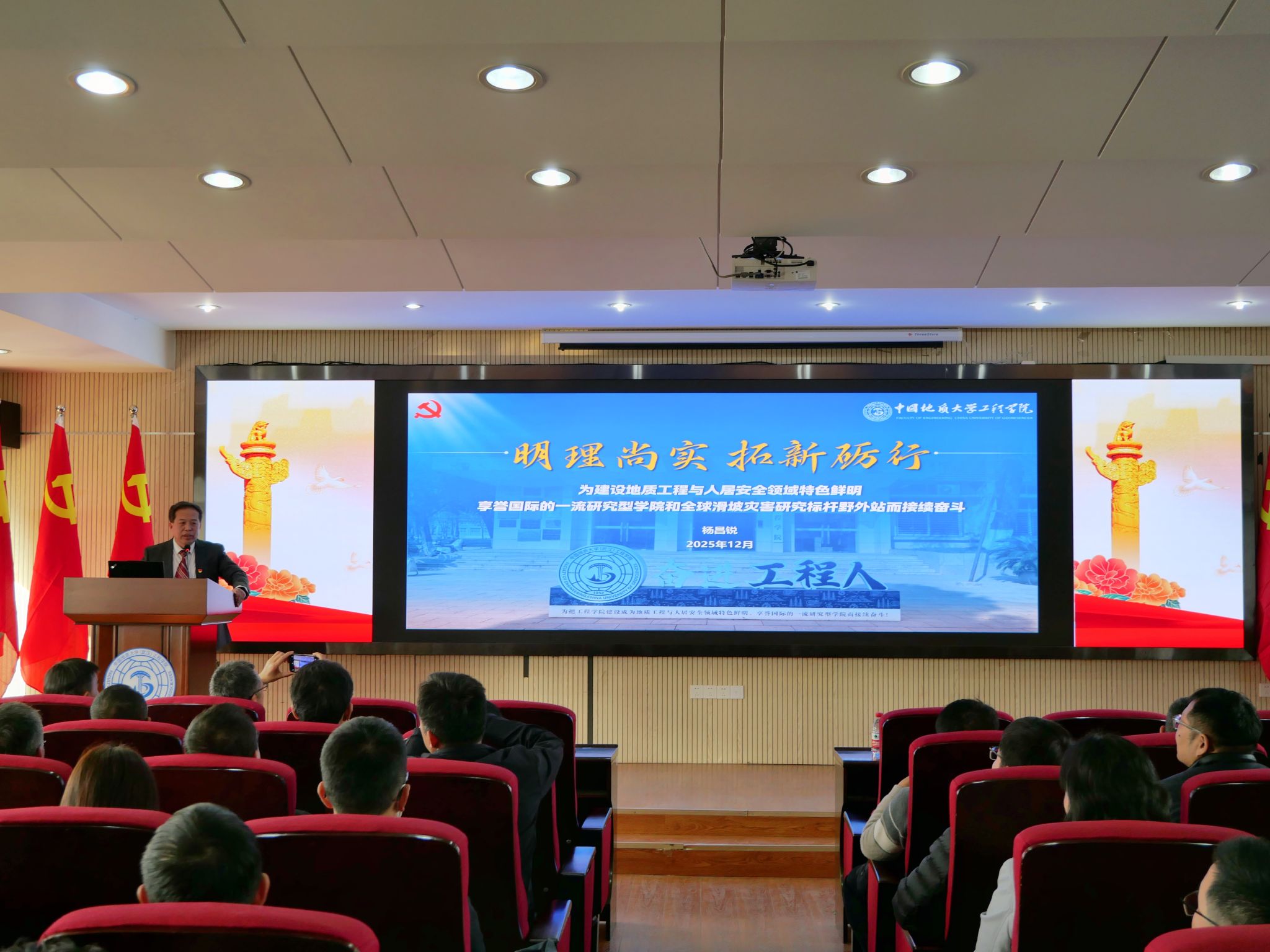 2025年12月11日,学院召开中共beat365正版唯一官方网站(武汉)beat365正版唯一官方网站委员会第五次党员大会,党委书记杨昌锐同志代表第四届党委会作题为《明理尚实 拓新砺行 为建设地质工程与人居安全领域特色鲜明、享誉国际的一流研究型学院和全球滑坡灾害研究标杆野外站而接续奋斗》工作报告