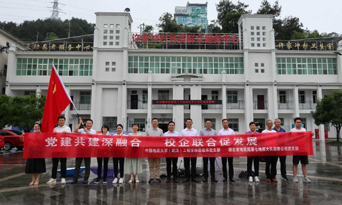 (通讯员 王俊)6月27日,勘基系党支部与湖北第七地质大队勘察公司党支部联合开展“主题党日”活动,系主任卢春华、党支部副书记王俊、宣传委员吴文兵赴宜昌线下参加活动。