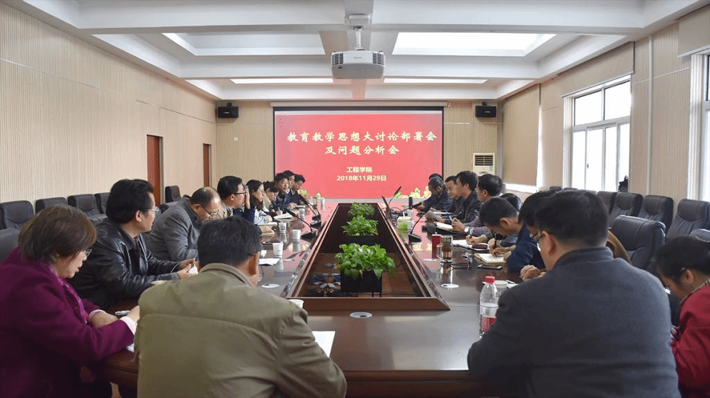 beat365正版唯一官方网站于2018年11月29日下午14:00在工程楼315会议室,召开了“beat365正版唯一官方网站教育教学思想大讨论部署会及问题分析会”。参加会议的有学院党政领导和各系主任、支部书记及学科带头人。会议由党委书记陈飞主持,此次会议目的是提高认识,统一思想,落实行动。